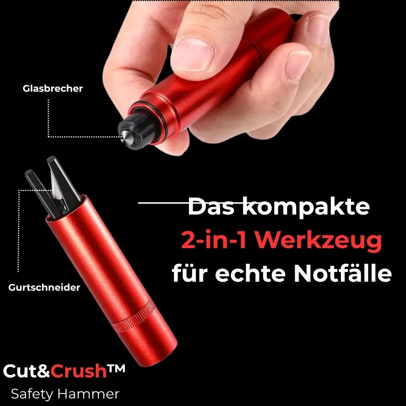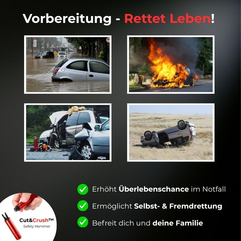 Von Rettungskräften unter realen Bedingungen getestet – bei Überschwemmungen, Fahrzeug- überschlägen und Bränden. Die Federmechanik und die gehärtete Stahlspitze sorgen für maximale Schlagkraft bei minimaler Anstrengung, während der Gurtschneider Gurte zuverlässig in Sekunden durchtrennt.